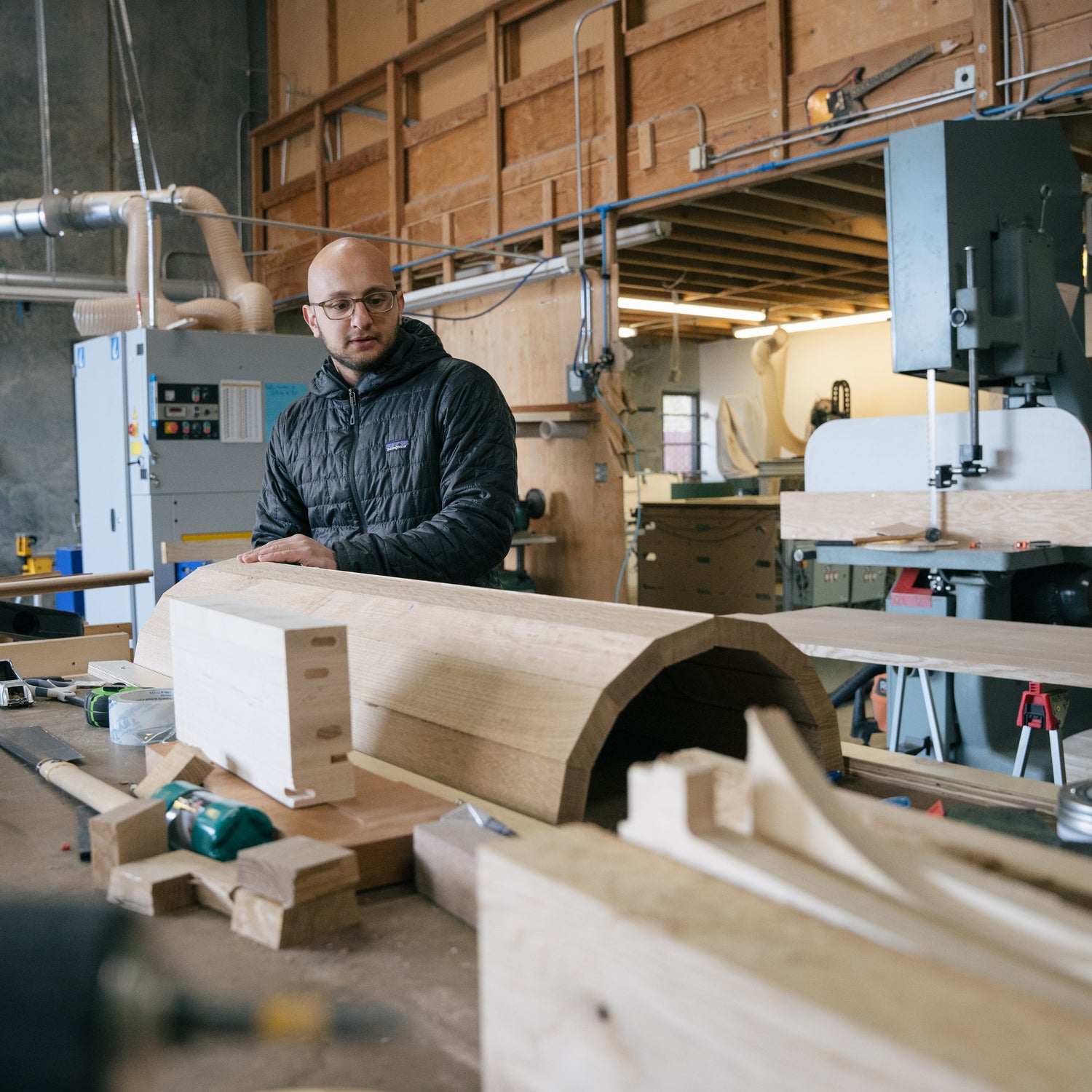 He has explored the curiosities of woodworking since he was a child, growing up in a Lebanese-Jordanian family. His style of woodwork has changed over the years, shaped by rustic farm explorations, a fascination with bent wood and organic forms, and the ways tooling affects processes & possibilities. He is passionate about bringing CAD/CAM-driven processes into our shop, to enhance our craft, working in combination with handcrafted techniques.