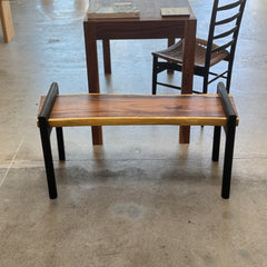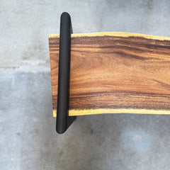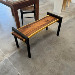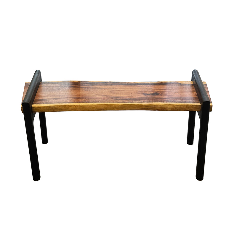 Creating a space of playful intention, the Beau bench is JOHI's latest riff on Modern Hawaiian furniture. A Maui Monekypod slab is set into a blackened Ash frame. The slab has natural dramatic grain and contrasting edges. The frame, which at first reads more steel than wood, carries natural grain texture through the black satin finish.
