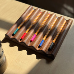You can use the Groove Tray as a wood desk organizer for pens, pencils, and other utensils, or to organize other everyday items. Our customers have used it to organize everyday items on their bedside tables, dressers, and bathroom vanities.