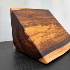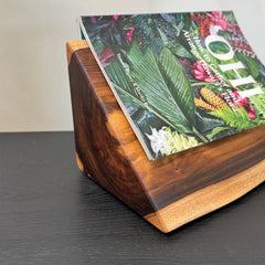 Two sister book rests available now — Solid hardwood, sanded and finished with a home-healthy wood wax. Originally grown and salvaged in Maui, Hawaii, the wood species - Kou - is a Hawaiian "canoe plant" valued for its beautiful grain.