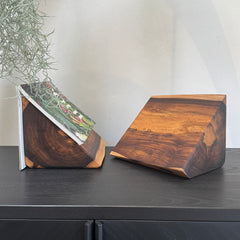 We designed these simple hardwood pieces to serve as a unique and sturdy book rest. Prop open a book to save your page over one of its corners!