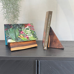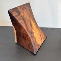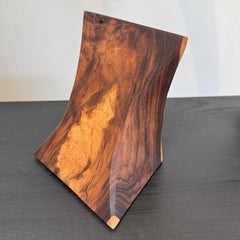 Unique book rest available now — Solid hardwood, sanded and finished with a home-healthy wood wax. Originally grown and salvaged in Maui, Hawaii, the wood species - Kou - is a Hawaiian "canoe plant" valued for its beautiful grain.